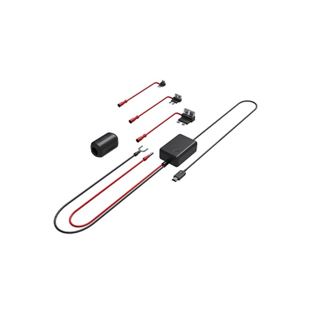 Description: Optional power cable for DRV-A series dashboard cameras; includes fuse tap cables (ATO/C, ATM, Micro 2) and has an 11.48 ft cable length.