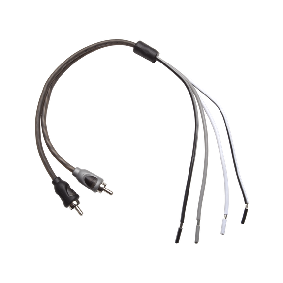 This high level speaker wire to RCA adaptor is an economic way to connect a factory OEM source unit to an amplifier.