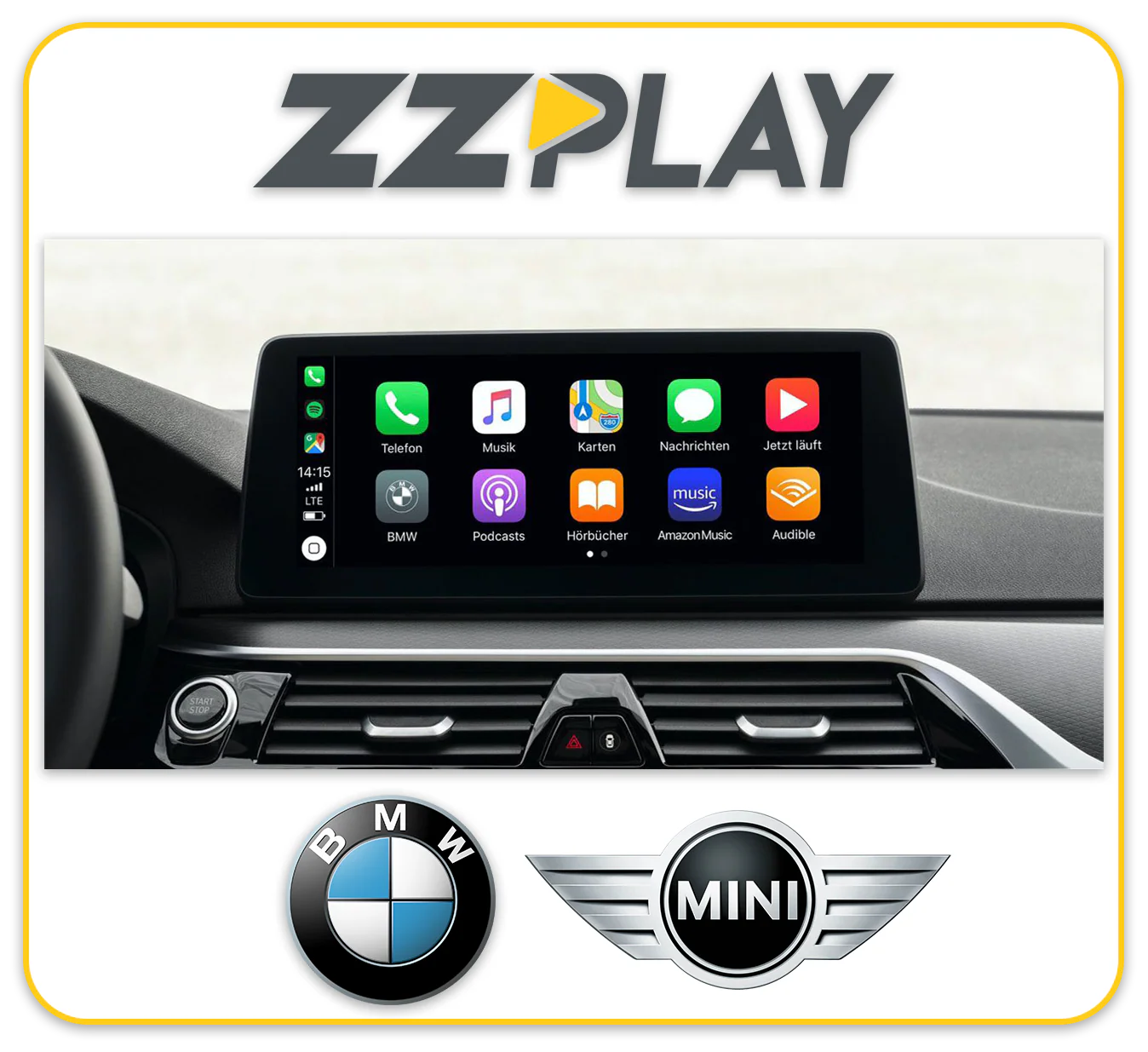 Wireless CarPlay/Android Auto, Camera and A/V interface compatible with select BMW, MiniCooper and Rolls-Royce equipped with the NBT Infotainment system.